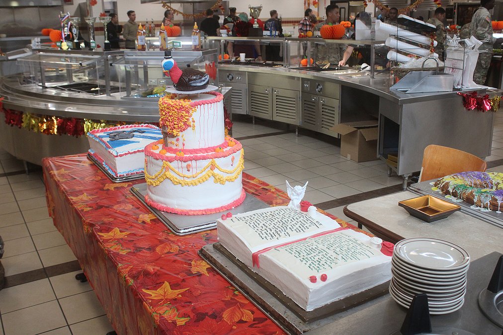 Preparations for the feast began two-and-a-half months prior, Sgt. 1st Class Pleasant said. The bakers and cake decorators began their work about two weeks out, and the cooking started at 7 p.m. Tuesday before the doors opened after 11 a.m. Wednesday for soldiers, their family members and guests.