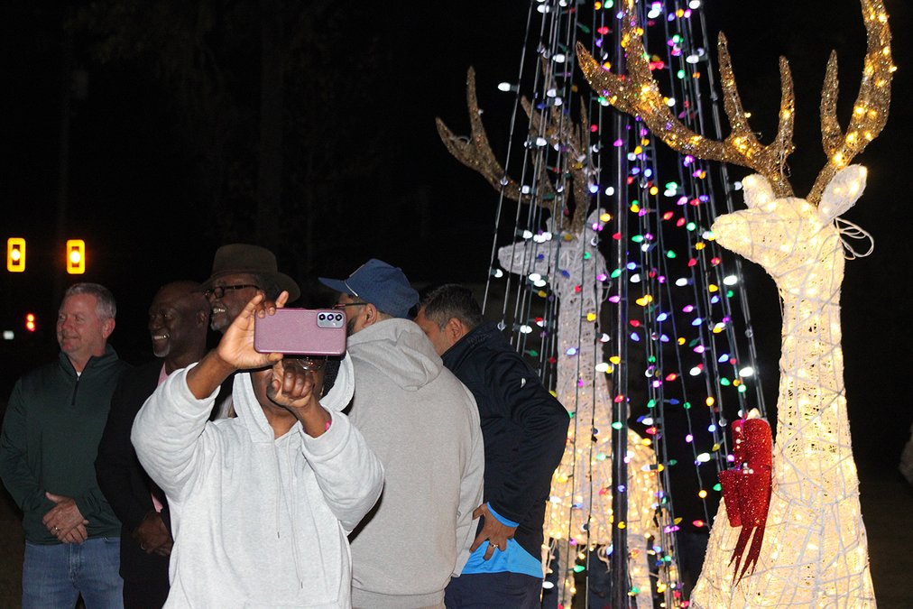 With help from outgoing mayor Paul Hawkins, kids flip the switch to turn on Flemington’s Christmas tree Monday.