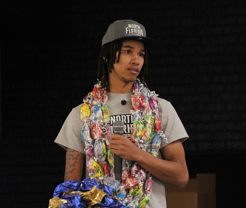 The 6-foot-7 star Bradwell Institute basketball player signed a letter of intent with the University of North Florida, in front of a multitude of family, friends and his teammates.